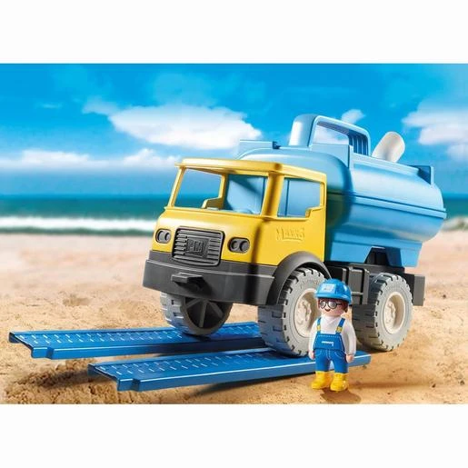 El tanque se puede rellenar con agua (capacidad aproximada: 4 tazas). Las dos rampas se pueden quitar y usar individualmente para jugar, haciendo más fácil la conducción sobre la arena.