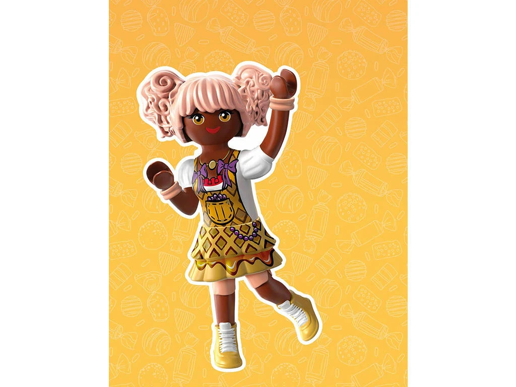 Crea un lugar único junto a esta dulce y animada joven, con un característico pelo rosa, un delantal con forma de gofre y hasta siete sorpresas que descubrirás una a una. Edwina tiene un montón de amigas, si las juntas podrás crear un lugar mágico como jamás antes, mezcla estas figuras con el resto de tus Playmobil y multiplica la diversión.