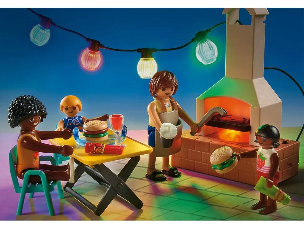 Y mientras algunos se refrescan, podrás preparar una suculenta barbacoa para comer o cenar juntos al aire libre, ya que encontrarás una barbacoa con salida de humo parrilla y fuego de verdad, además de hamburguesas, alimentos, mesa y sillas.