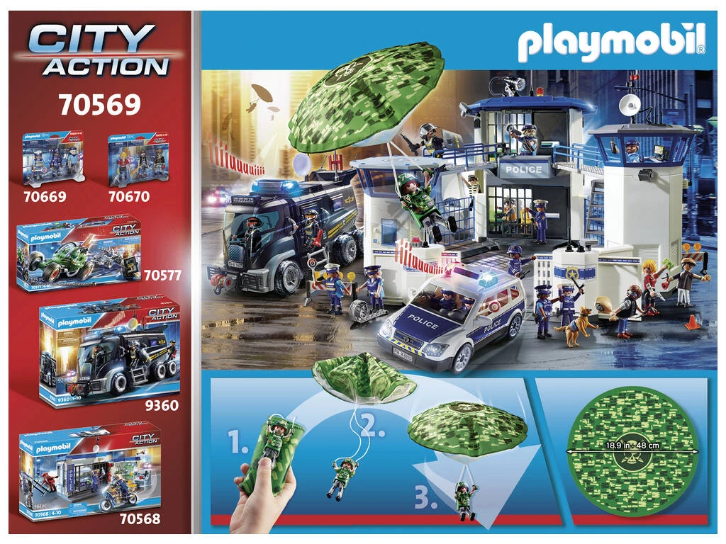 ¡Por tierra, mar y aire, nadie escapa de la ley! ¡Disfruta de una persecución única con el pack Playmobil City Action Persecución en Paracaídas!
