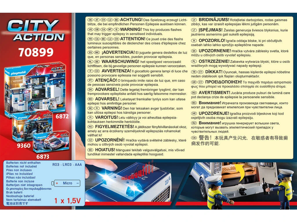 Aumenta la flota de vehículos de la policía de tu ciudad Playmobil, con este Coche Policía con Luz y Sonido.