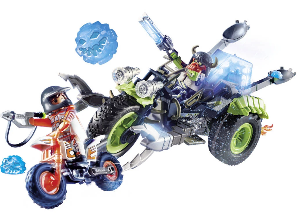Realiza y vive nuevas y distintas aventuras sobre el frío hielo o bajo la nieve. Recrea las situaciones de persecución y combate con estas fantásticas figuras y vehículos de combate. ¡Prueba la lanzadera para atacar desde la distancia y acertar desde lejos!.